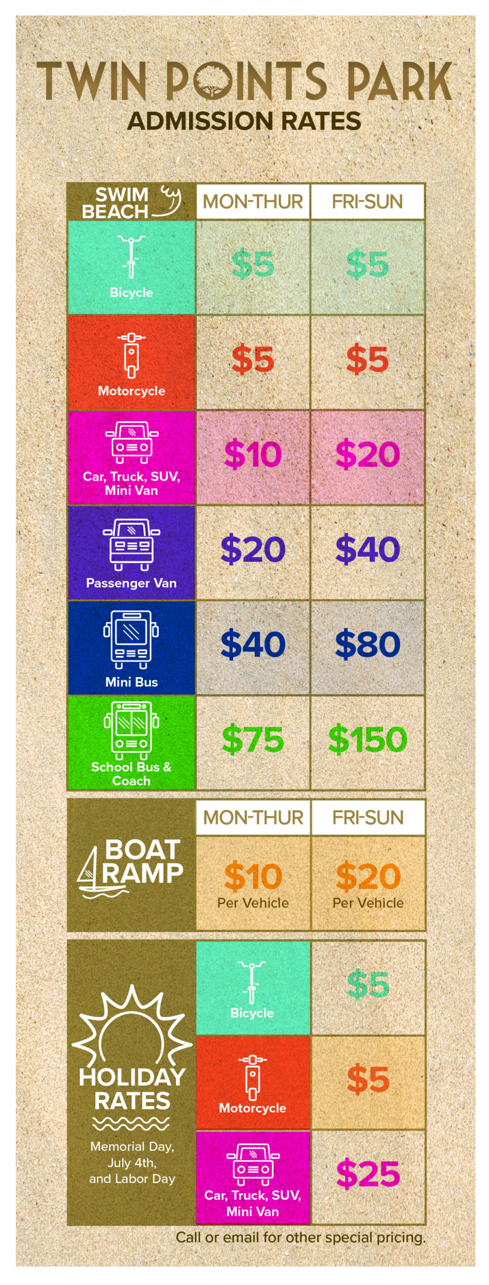 This may be the perfect venue for your special event. Depending on the time of year and proposed activity Twin Points Park might be available for you and up to 1500 of your closest friends to enjoy the park all to yourselves. Availability is based on activity, facility status, and staffing requirements. Several businesses have taken advantage of this offer to facilitate company picnics after Labor Day through mid-October.